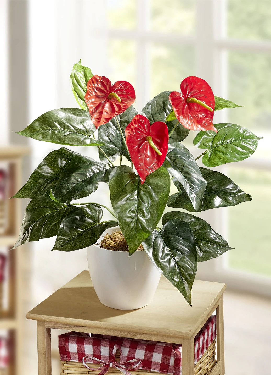 Diese echt aussehenden Anthurien sind ein immerblühender Blickfang in Ihrem Zuhause. Ganz ohne Gießen bleiben sie selbst in den dunkelsten Ecken schön grün. Aus hochwertigem Kunstmaterial gefertigt und in einen braunen Kunststofftopf fest eingesetzt. Lieferung erfolgt ohne Übertopf.