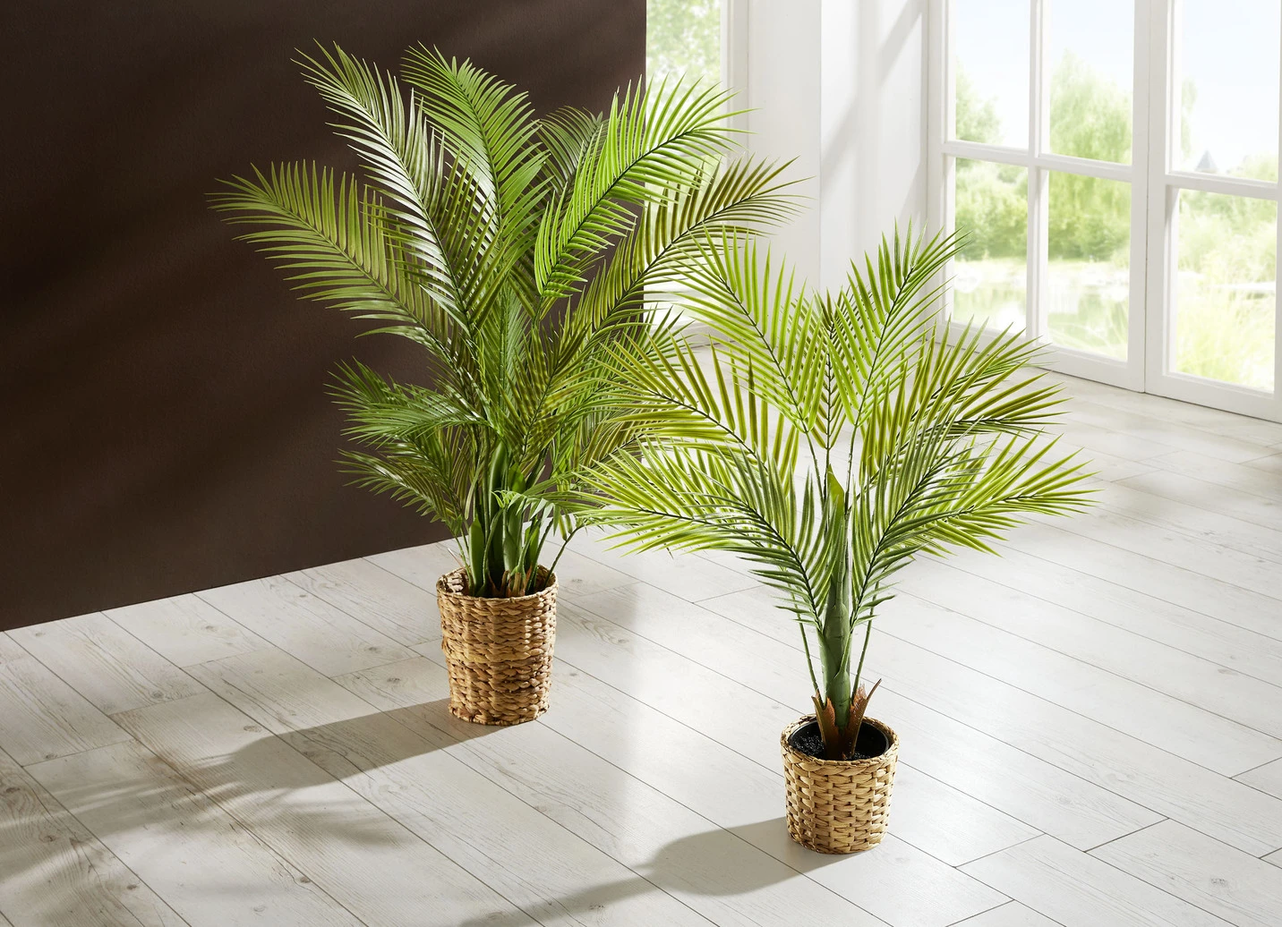 Absolut pflegeleicht und ein zeitloser Blickfang ist diese tolle Arecapalme. Selbst in der dunkelsten Ecke des Zimmers bleibt sie schön grün. Aus hochwertigem Kunstmaterial hergestellt und fest in einen schwarzen Kunststofftopf eingesetzt.