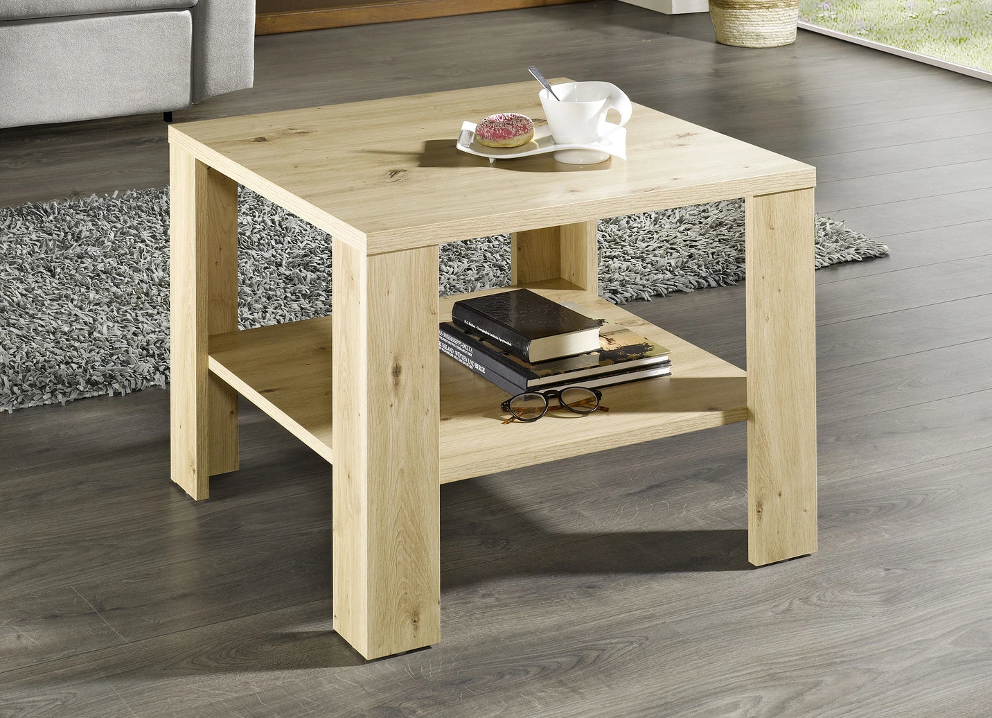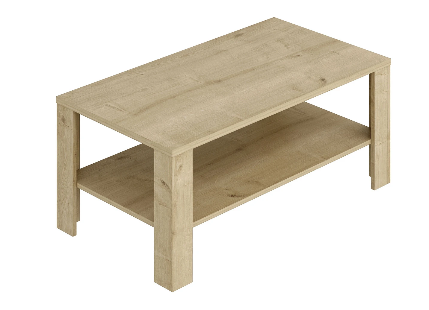 Couchtisch mit großer Ablagefläche in der Ausführung rechteckig und in Wildeiche.