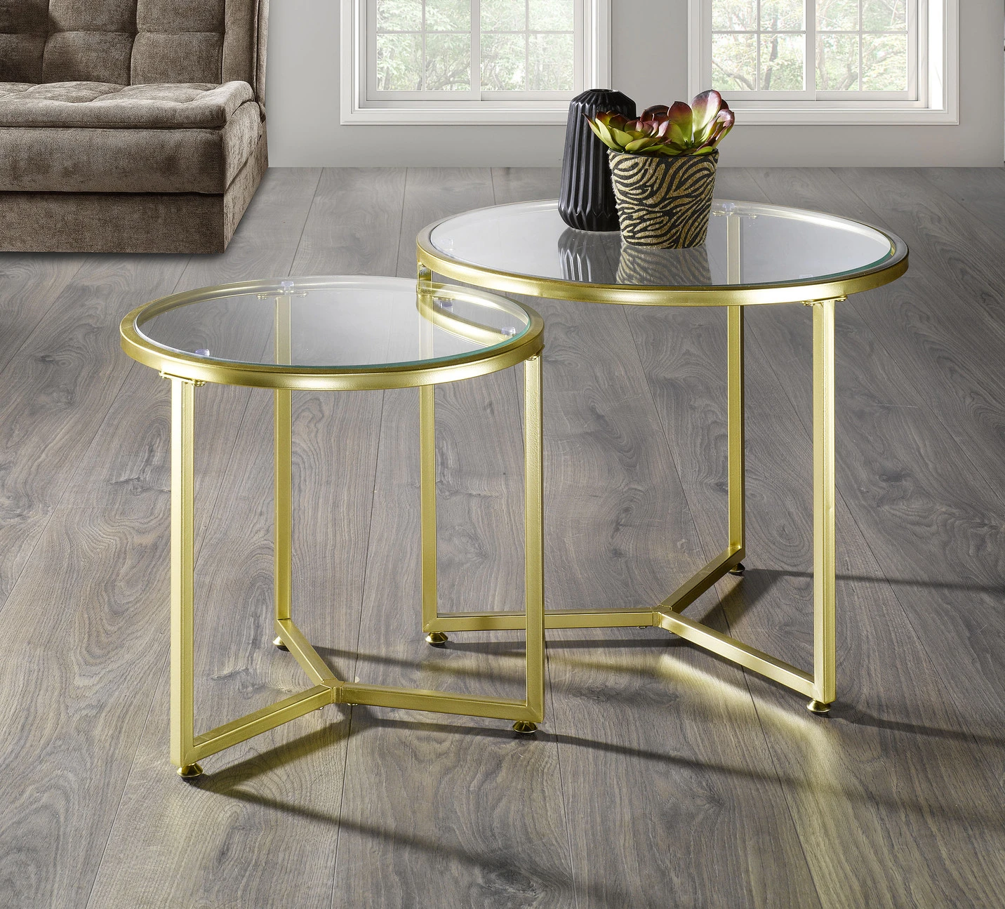 Couchtisch-Set mit Glasplatte, 2-teilig in Gold.