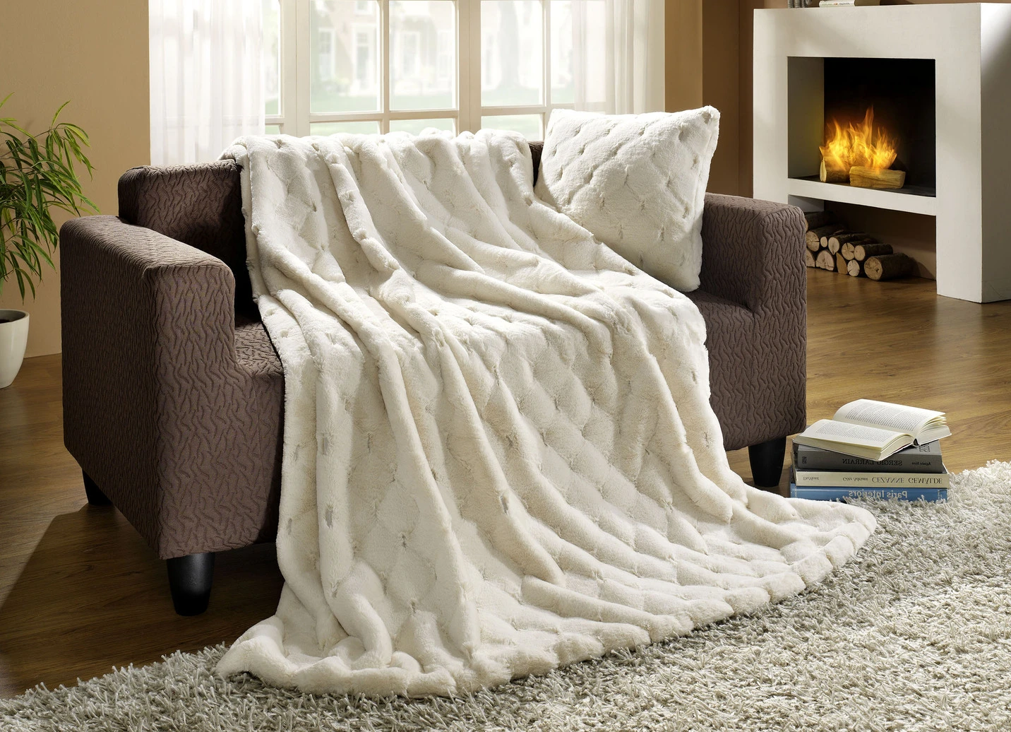 Felldecken und Kissen aus natürlich wirkendem Webpelz-Fellimitat
