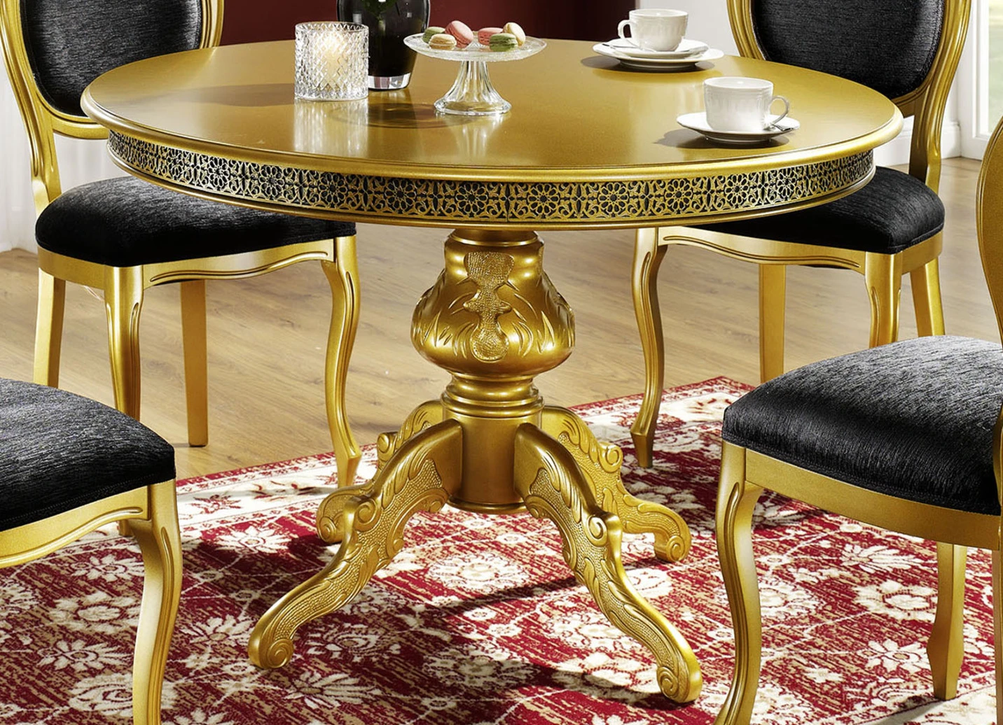 Das Tischbein und die -füße sind aus massivem Pappel- bzw. Buchenholz gefertigt. Tisch mit runder Tischplatte. Mit Aufbau-Anleitung