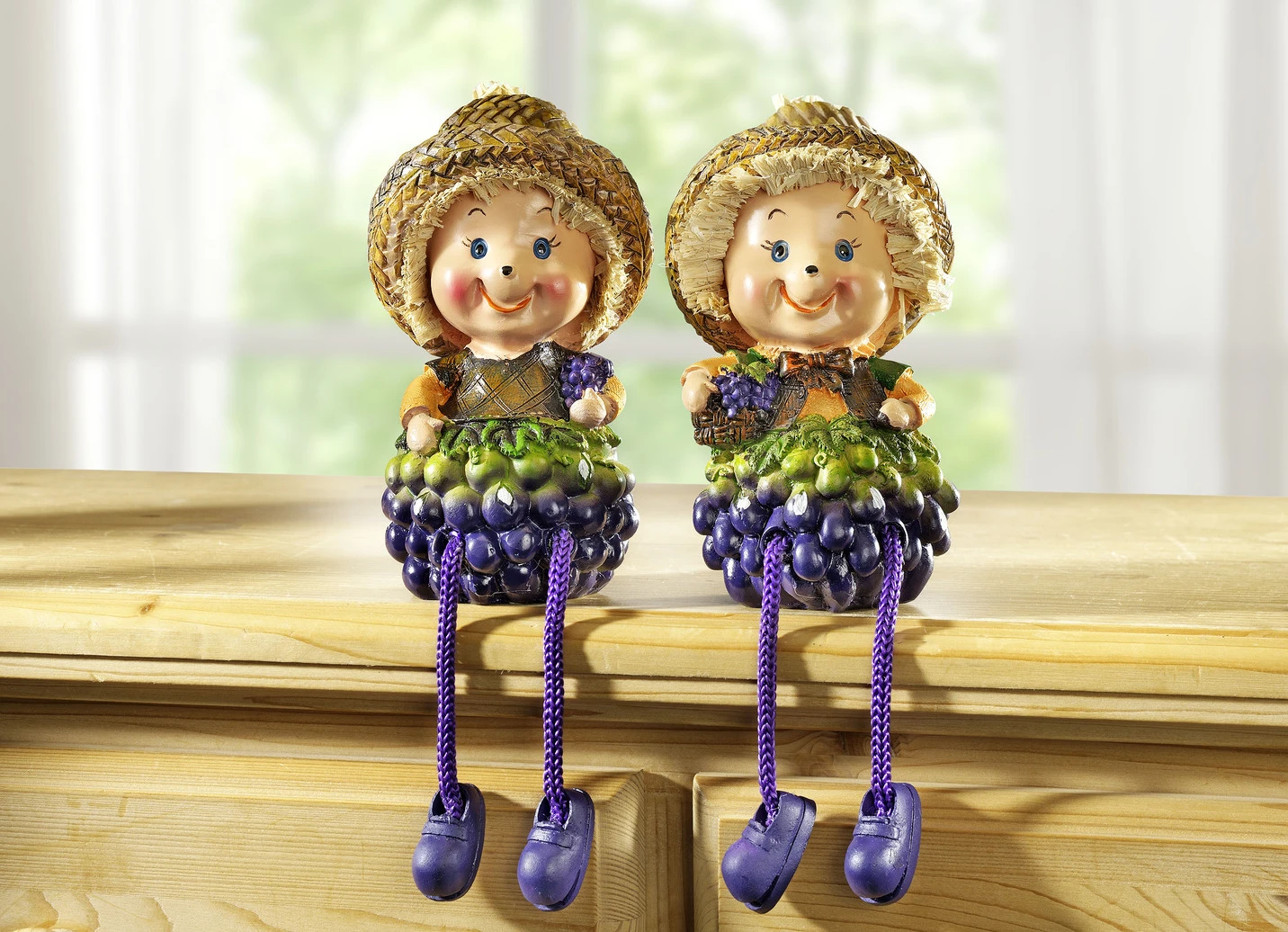 Diese zuckersüßen Beerenkinder im 2er-Set verschönern jede Fensterbank oder das Regal bei Ihnen Zuhause! Die beiden witzigen Figuren wurden in Form einer Brombeere aus Polyresin mit Strohhut und flexiblen Beinen aus Kunststoff-Kordel gefertigt. Maße: je Länge 23 cm, Höhe 14 cm.