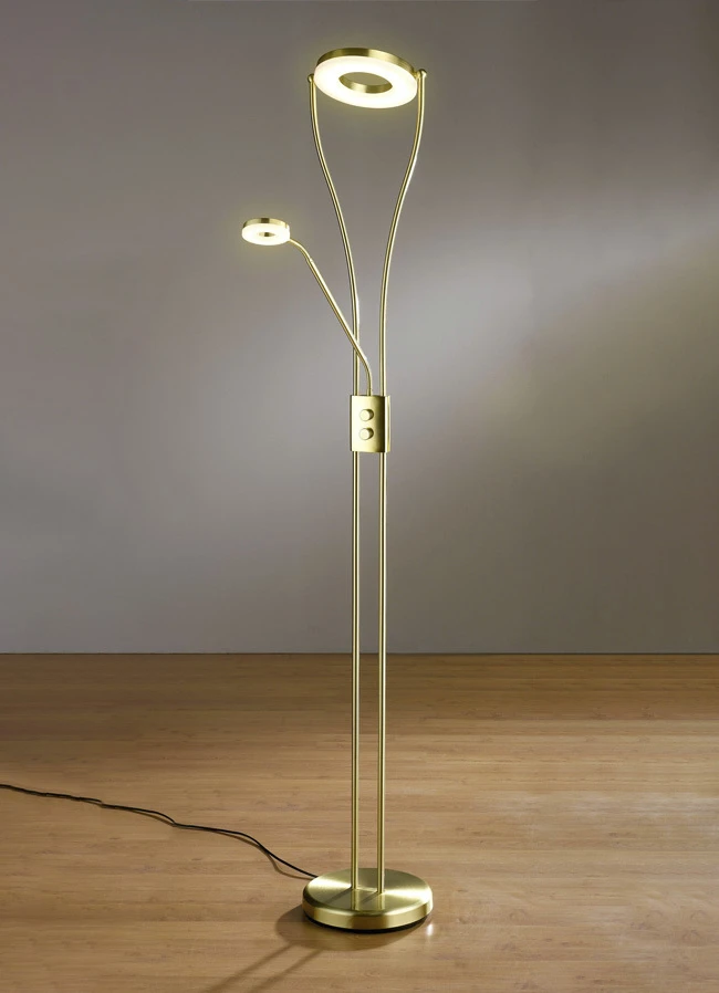 Moderner LED-Deckenfluter mit separatem Lesearm. Durch den schwenkbaren Fluter erhalten Sie eine tolle Lichtausstrahlung. Dimmbar, mit 2 separaten Schaltern. Fluter 1x SMD LED 18 Watt, 1500 Lumen, 3000 Kelvin. Lesearm 1x LED 4 Watt, 385 Lumen, 3000 Kelvin, 230 Volt. Die Leuchte enthält eingebaute LED-Lampen des Energieeffizienzspektrums A++ bis A (nicht austauschbar). Maße: Höhe 180 cm, ø 28 cm, Ausladung 50 cm. Mit Aufbau-Anleitung