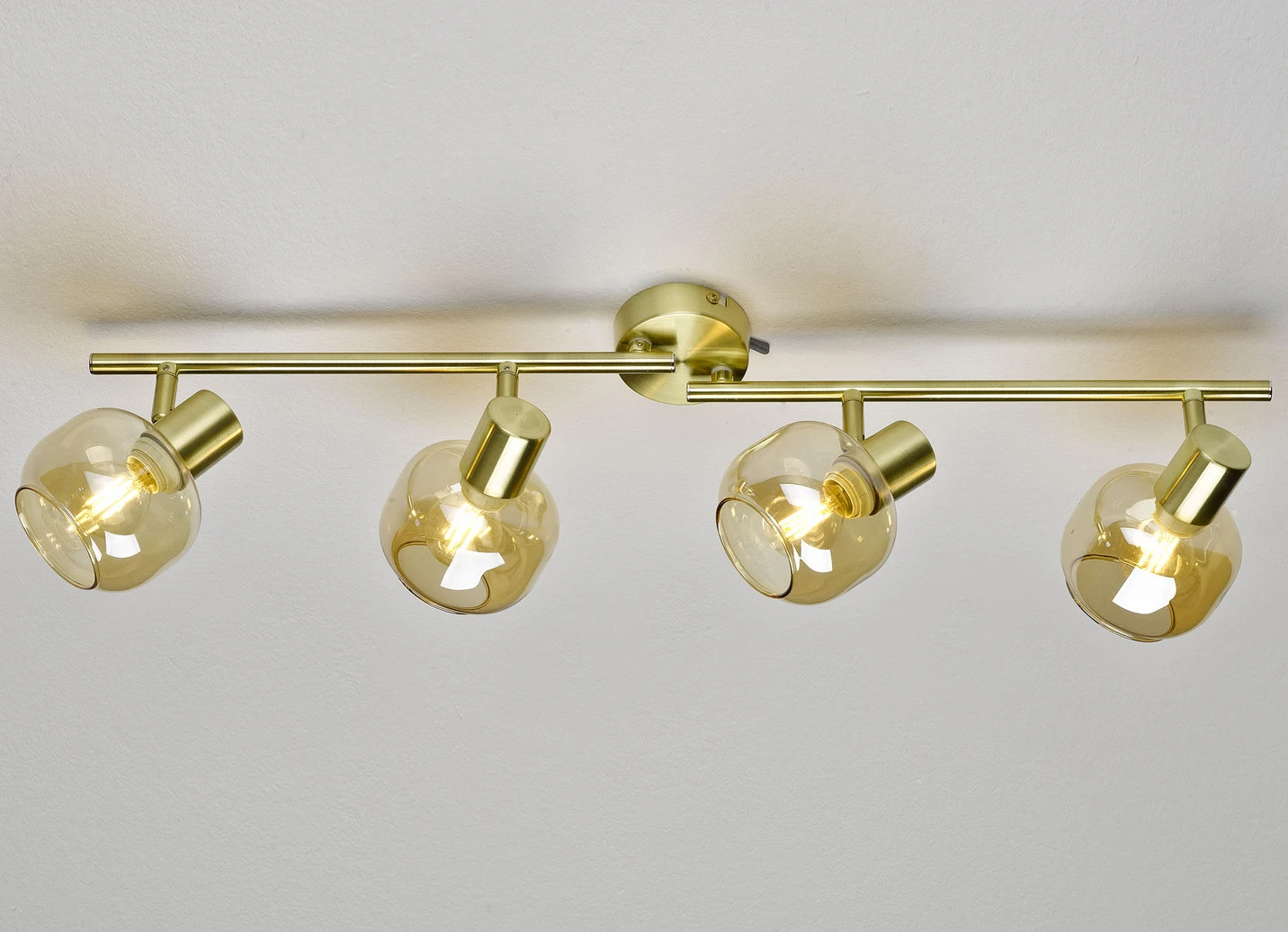 Stilechte Deckenleuchten mit getöntem Glas in der Ausführung Deckenleuchte, 4-flammig und in Messing.