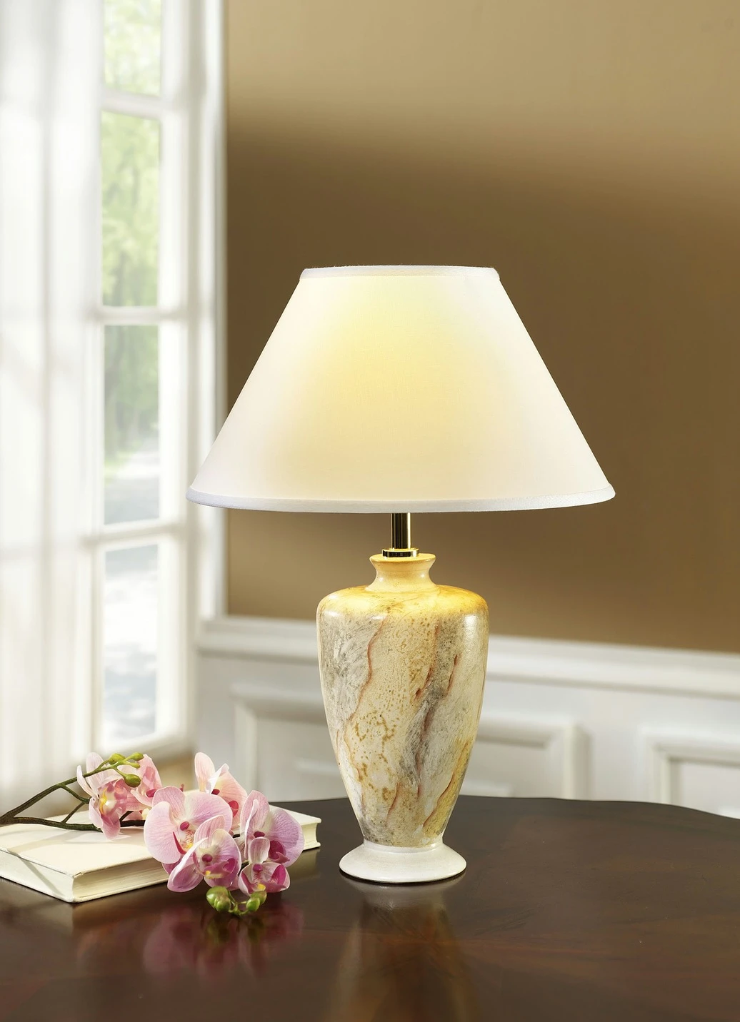 Tischleuchte in Handarbeit hergestellt und bemalt in Beige-Marmor.