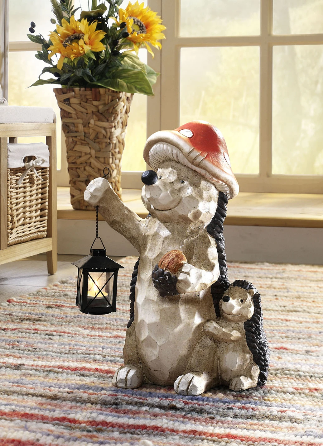 Eine bezaubernde Dekoration für die Herbstzeit ist diese Igelmutter mit Kind, die mit ihrer Laterne den Weg erhellt. Passend für ein Teelicht (nicht im Lieferumfang).
