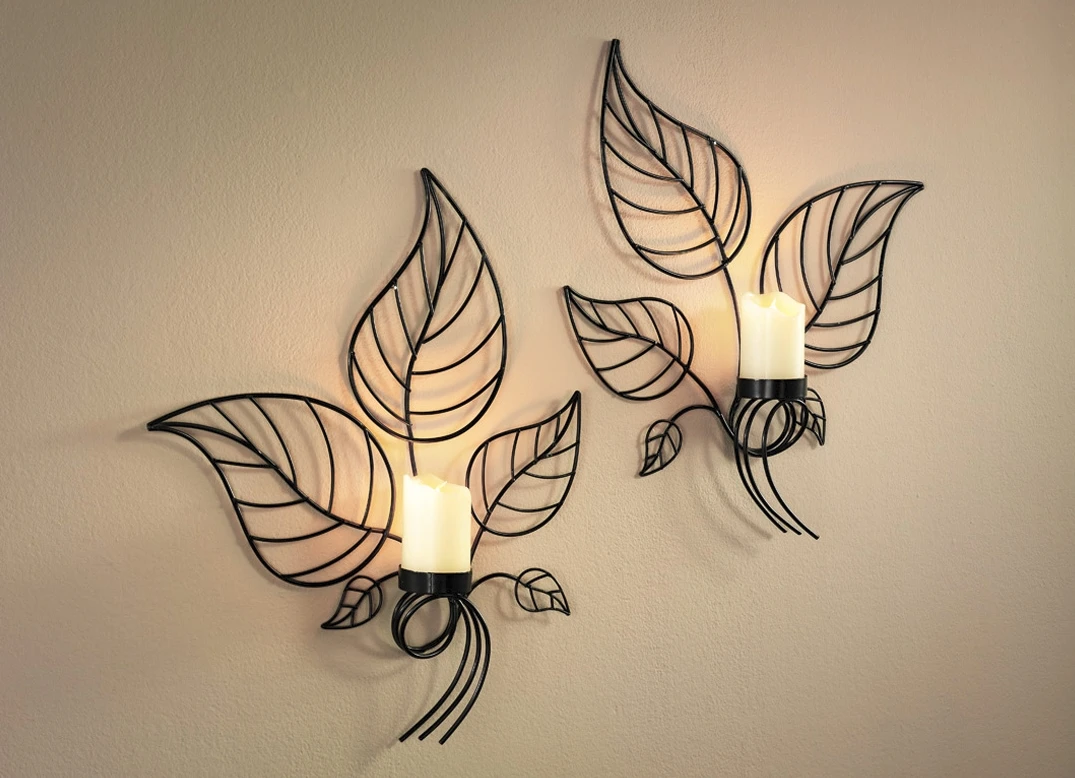 Mit diesem extravagant geschwungenen 2er-Set Wandkerzenhalter in Blätterform verschönern Sie Ihre Wände und zaubern eine stimmungsvolle Beleuchtung in Ihr Zuhause. Aus Metall gefertigt, jeweils mit 1 LED-Echtwachskerze mit naturgetreuem Flackereffekt. Batteriebetrieben mit je 1 Knopfzelle CR 2032 (im Lieferumfang enthalten). Maße: je B35x H42xT6 cm, Kerze ø 5 cm, Höhe 8 cm.
