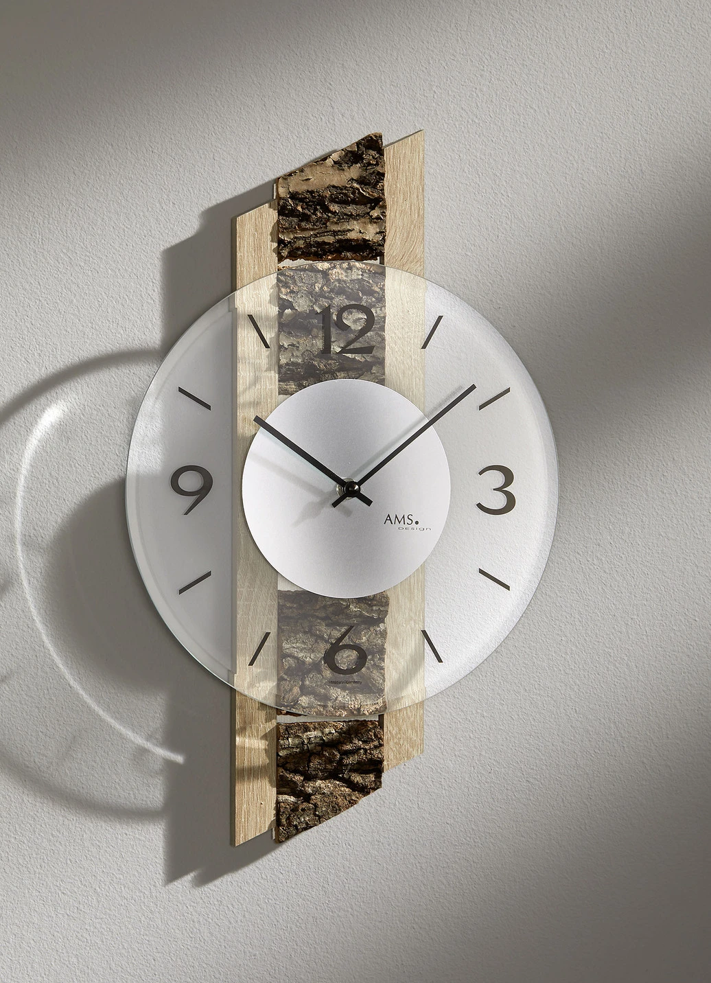 Diese edle Wanduhr wurde in Deutschland hergestellt. Die Rückwand besteht aus massivem Holz. Zum besonderen Blickfang wird die Einlage aus Baumrinde werden. Zifferblatt aus facettiertem Mineralgas mit arabischen Ziffern und schwarzen Metallzeigern. Quarzuhrwerk batteriebetrieben mit 1x 1,5 Volt Mignon (nicht im Lieferumfang enthalten). Maße: L44xB27,5 cm