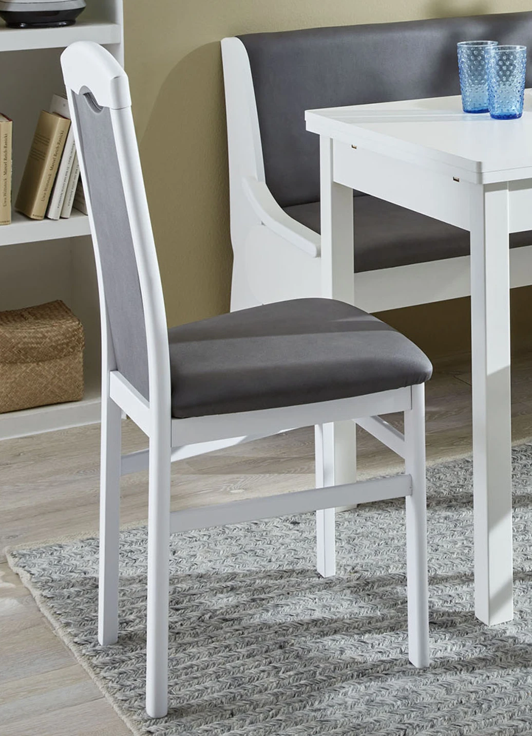Zeitlose Esszimmermöbel in der Ausführung 2er-Set Stühle und in Weiss-Blau.